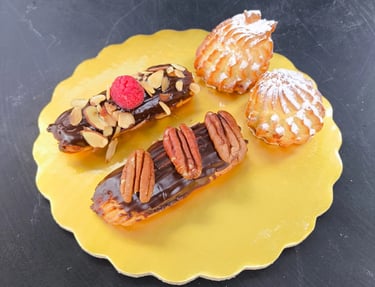 Pasteles, tartas, macarrones, panques, profiteroles y galletas, siempre procurando la calidad de los materiales así como su originalidad, no usamos pseudo marcas para siempre mantener una calidad coherente en todos nuestros productos.